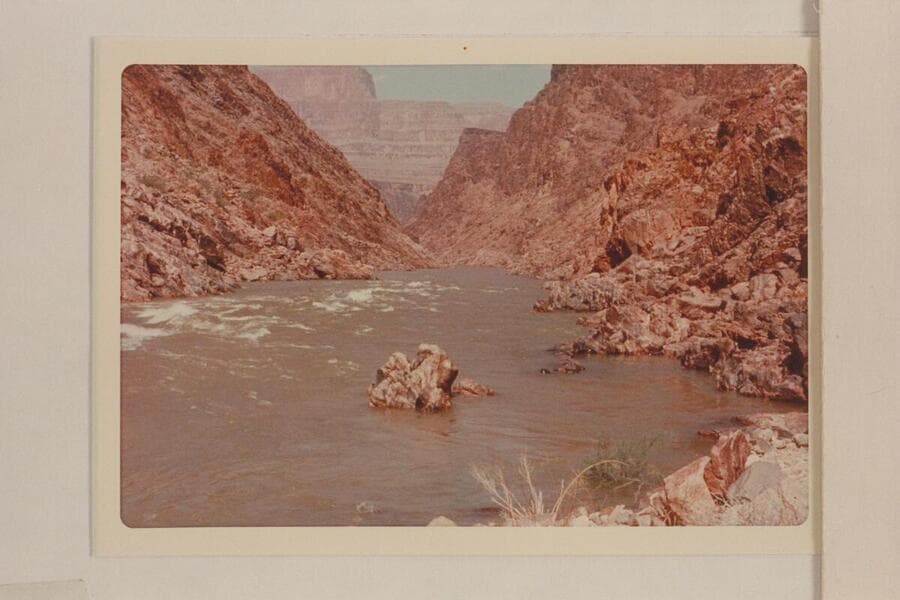 Head of 232 Mile Rapid from right bank. Buzz and Bill Belknap in foreground