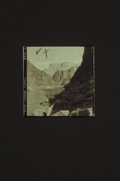 Down river from the cove above Bridge Canyon Rapid, Mile 234.9. Jim Jordan and the "JUNE BUG" at the beach