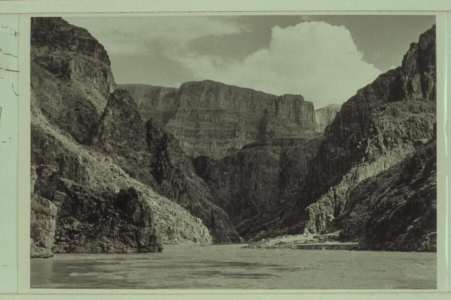 Up river in Bridge Canyon Rapid. The mouth of Bridge Canyon is at right