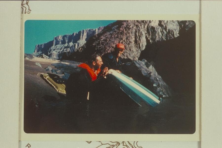 Bridge Canyon Rapid. John Harrington, Homer Morgan and Jorgen Visbak were returning to salvage the parts from the wrecked motorboat at Gneiss Canyon