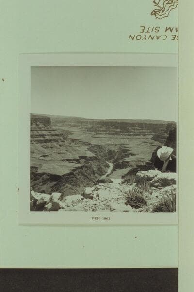 Upstream toward the cable at Bridge Canyon Dam Site. Visbak notes that Homer is in the cable car
