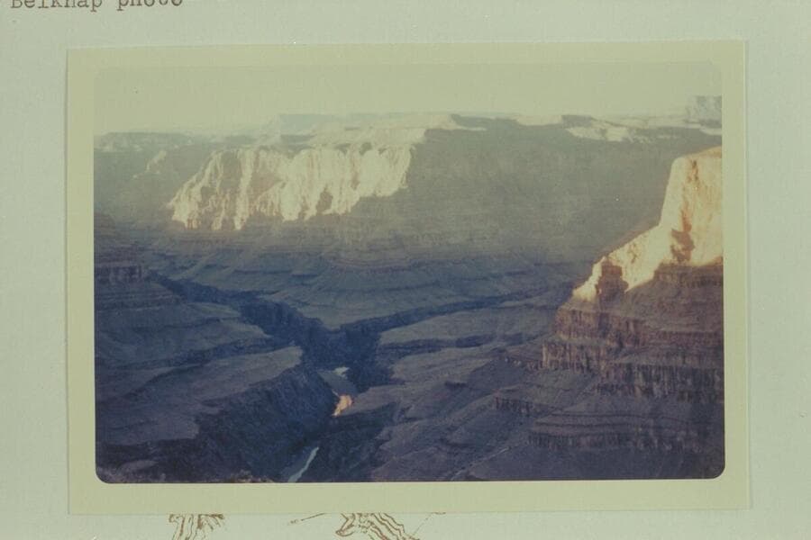 Downriver from Mile 238. The cook house of Bridge Canyon City is below the side canyon at left bank