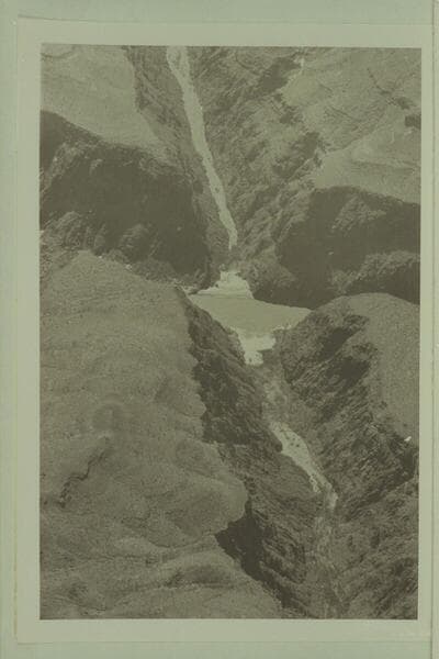 Looking southwest to mouth of Separation Canyon and Colorado River. The beach on the far side of the river is the campsite of the Powell party of 1869, Aug