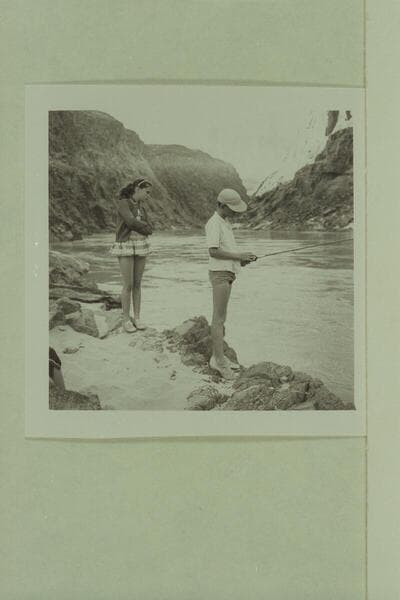 Debbie Marston watches Jeff Marston at fishing. Separation Canyon