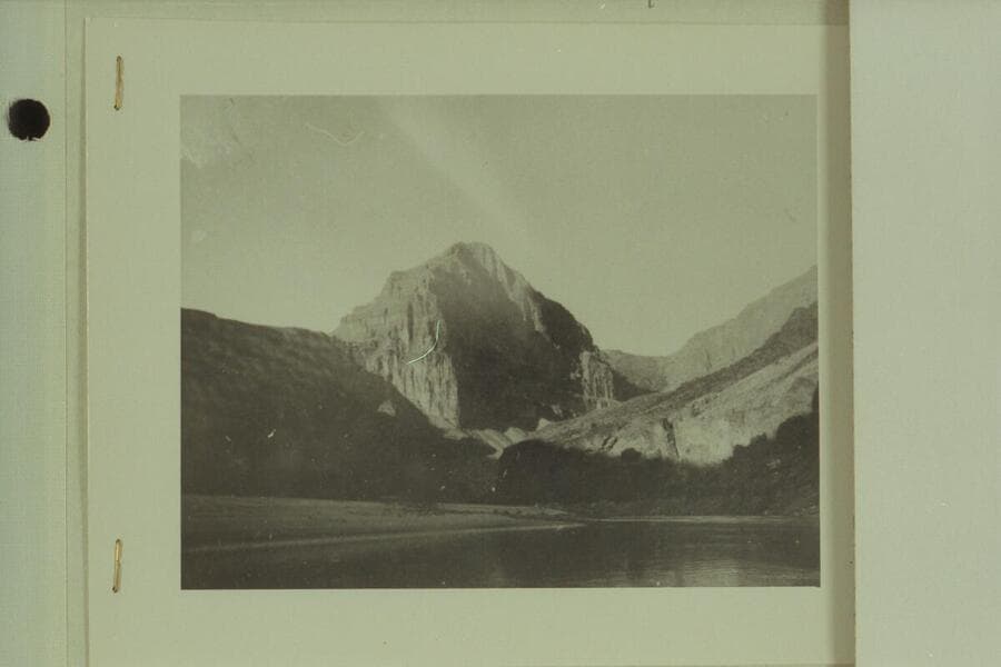 A view from the river bed of the Colorado River at the lower end of Hance Rapid in the Grand Canyon. "3059" written in white in the lower left corner.