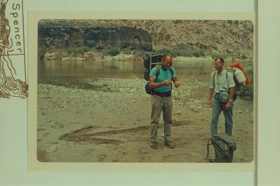 Visbak-Butchart party walking up Spencer Canyon, below Meriwitica