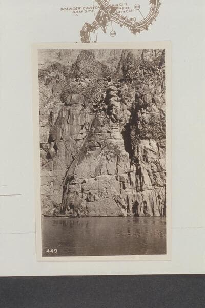 Mouth of Spencer Canyon. Lower center is the lava block which gave the name to the former rapid- Bold Escarpment Rapid and Lava Cliff Rapid