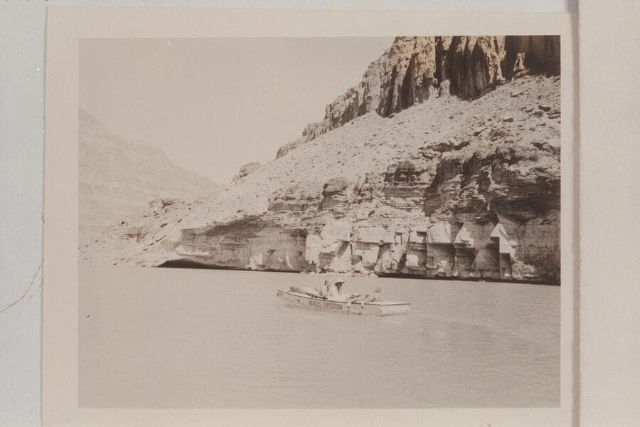 Zoe and Joe Desloge take a spell at the oars. Head of Lake Mead in Grand Canyon