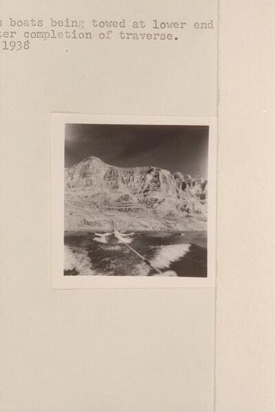 Nevills boats being towed at lower end of Grand Canyon after completion of traverse
