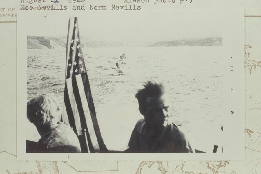 Dock Marston and Norm Nevills at Pierces Ferry after 1947 traverse of Grand Canyon