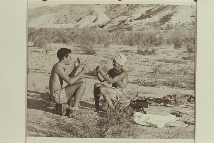 Al Milotte and Garth Marston diving into the pool at Phantom Ranch