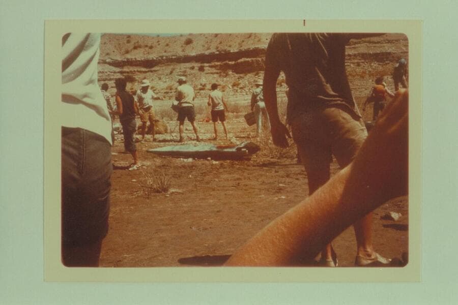 Kayak found by Scott. Pierce Ferry, Lake Mead. History Workshop Grand Canyon Expeditions, Inc