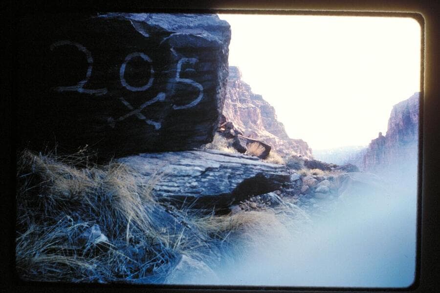 Up from the 205 inscription on the boulder opposite the mouth of Range Canyon at Mile 205