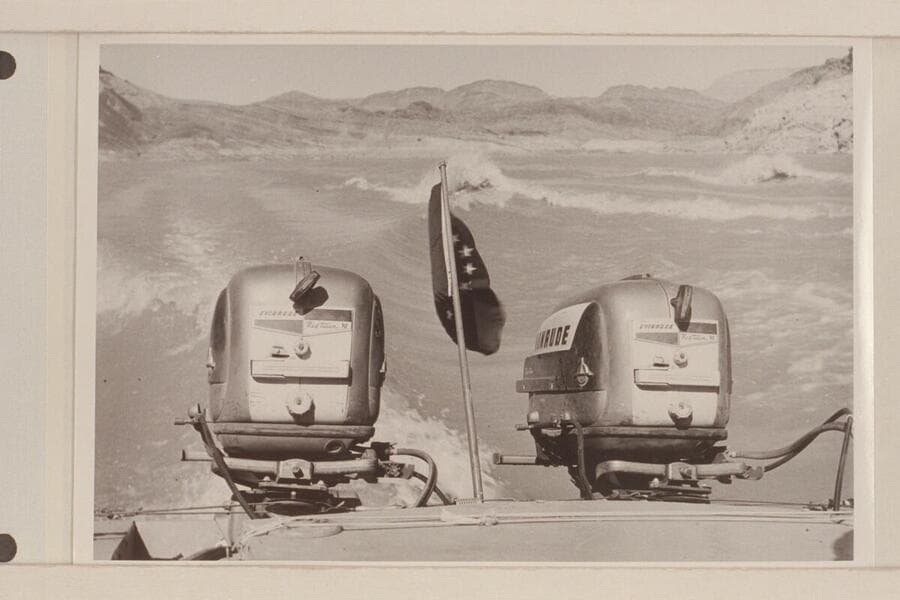 The three motorboats in Iceberg Canyon. The "Boo" is leading. The "Cactus" is at her stern, and the "Rattlesnake" is right