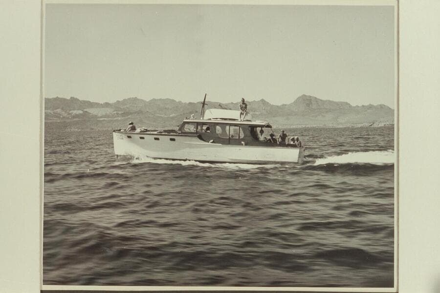 The Park boat and the "Hae Dae" stopped at Sandy Point on Lake Mead during lunch after end of Nevills party run of the Grand Canyon in 1948