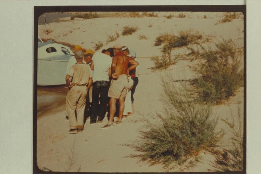The Park boat and the "Hae Dae" stopped at Sandy Point on Lake Mead during lunch after end of Nevills party run of the Grand Canyon in 1948