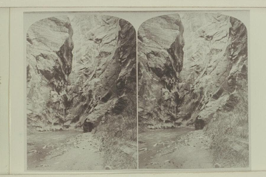 The narrows of the Rio Virgin, Utah. Wood engraving, 10 3/8x 7 7/8 inches