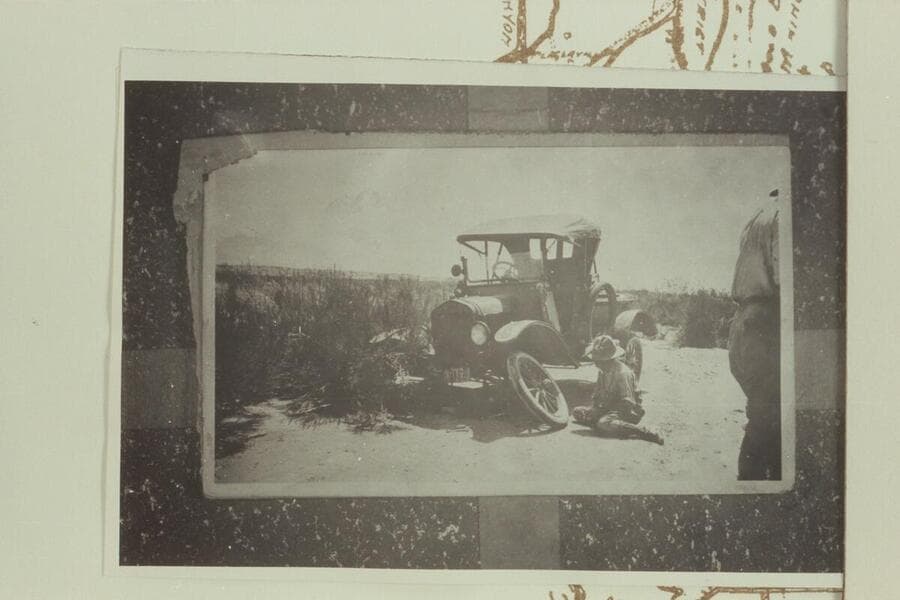 Repairing broken axle- scouting trip to locate Boulder Canyon Road and Government Camp by Bonelli Landing