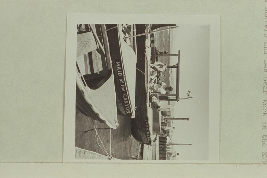 Jim Jordan's African Queen and the two Disney prop boats on arrival at Boulder City. Vee Bodrero and Les Gear work in the "Emma Dean"