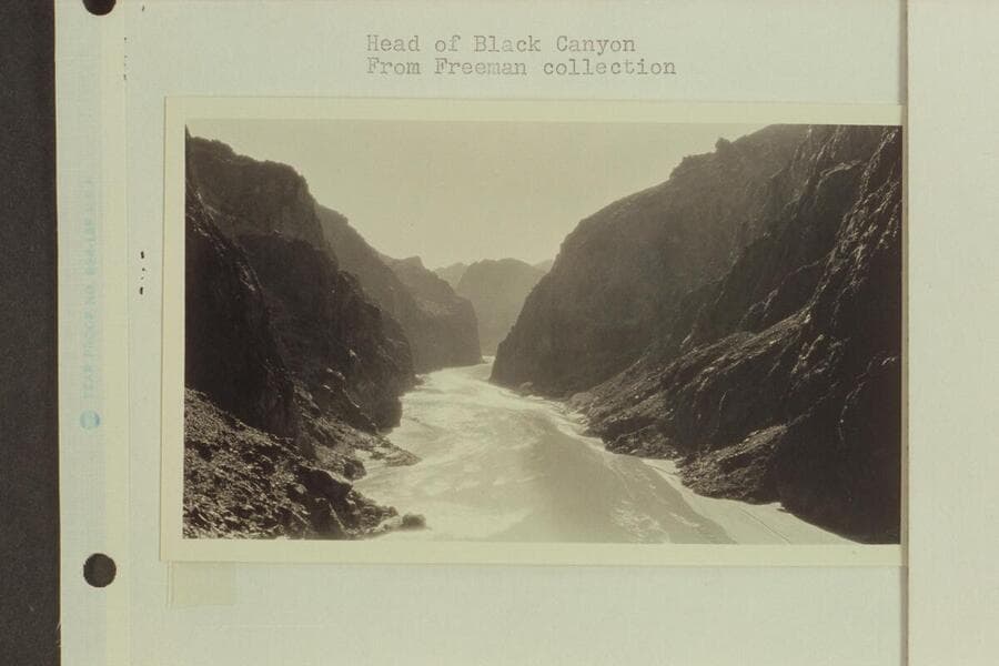 Boat landings at head of Black CAnyon during construction of Hoover Dam