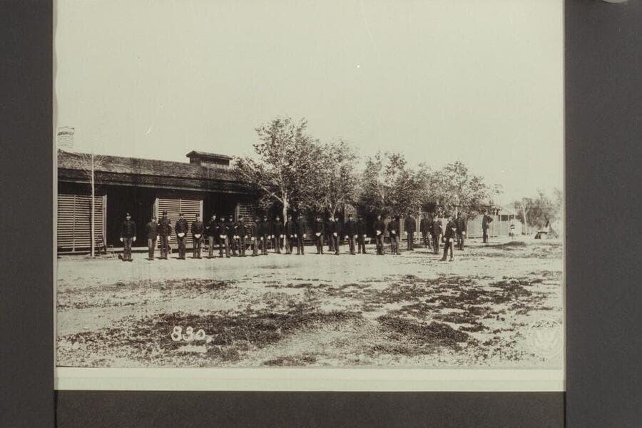 Troops at Fort Mojave. Captain A. H. Bowman; Lieuts. Hersey and Moriarty; Corporal McGaffin