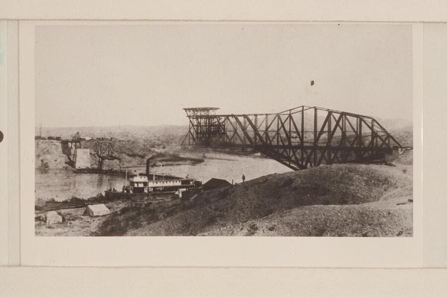Topock Bridge in the building. Frank Hutt engineer of the work train