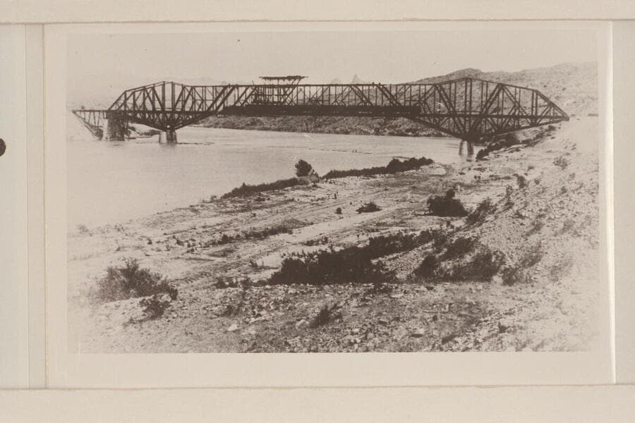 The bay and three bridges at Topock. The copy negative cut off one bridge