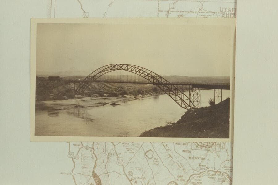 The bay and three bridges at Topock. The copy negative cut off one bridge