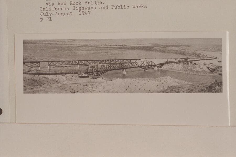 Construction of Red Rock Cantilever Bridge nearing acompletion in 1890. Below Needles