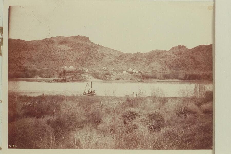 Frank Masland, Jr., on head of Lake Mead near Bureau of Reclamation camp at Bridge Canyon City