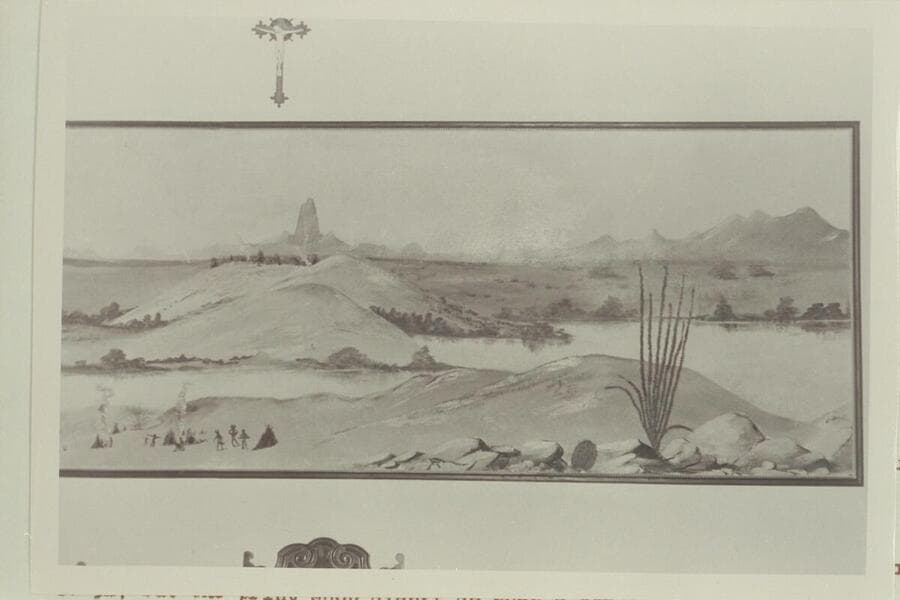 Location of Fort Yuma and Picacho Peak. Photo of painting by a Yuma indian