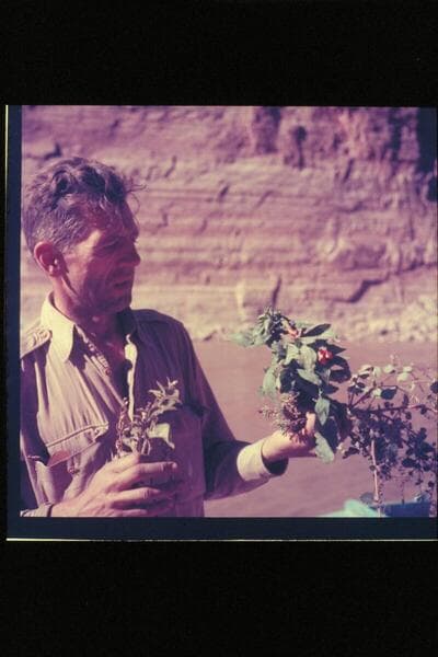Hugh Cutler pressing plant specimens below Vaseyes [sic] Paradise
