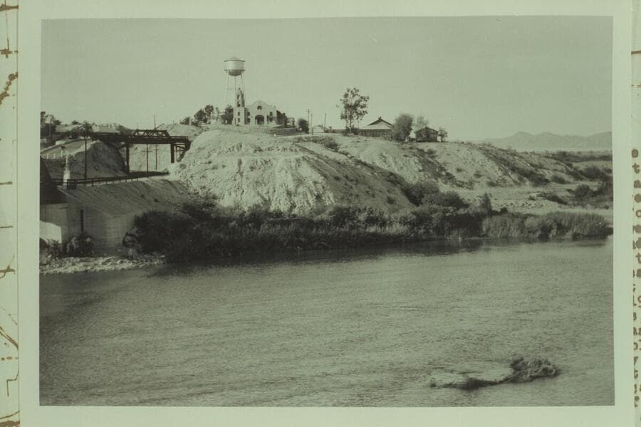 The Colorado River near Yuma; looking east-northeast from West Yuma Hills and about 250 ft. downriver from similar photo looking up and east to bridges