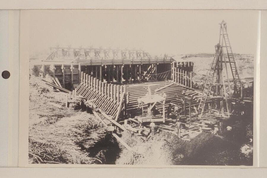 The work on headgate apron at Sharp's. Colorado River control for Imperial Canal