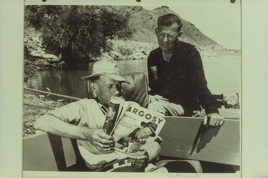 5 items: letter (in plastic sleeve), 2/9/1962, from Allan Hancock to Ed Ainsworth, thanking him for a copy of The California I Love by Leo Carrillo (in collaboration with Ainsworth); article copy from "Keeping up with The Times," 6/2/1967, on Ed Ainsworth; copy of Ainsworth's final LAT column ("On the Move"), 6/6/1967, "Time arrives for farewell";copy of LAT obit, "Ed Ainsworth, retired Times columnist, dies in San Diego"; clip of Among Ourselves obit, 7/1968, "Death takes Ed Ainsworth, Timesman for 43 years."