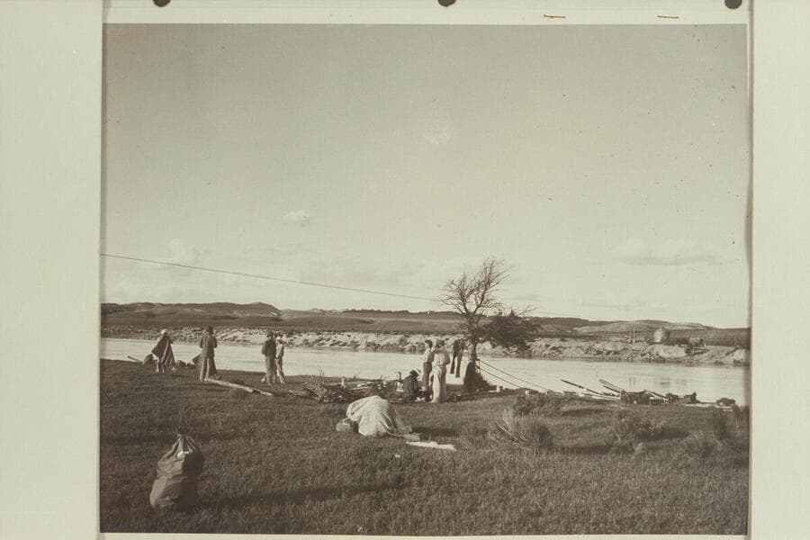 Camp above mouth of Henry's Fork. L to R: Taylor, Joan Nevills, Reynolds, Frost, Loel Marston and Maradel Marston
