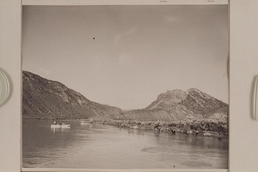 Floating into Flaming Gorge, Green River. Nevills in the "WEN" in the foreground