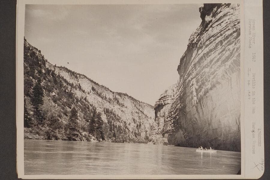 Floating into Flaming Gorge, Green River. Nevills in the "WEN" in the foreground