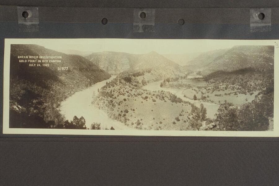 Green River Investigation- Downstream half of panorama , Red Canyon, 1/4 mile above turn at Gold Point