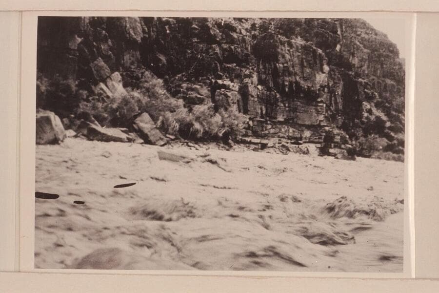 Lloyd Shearer standing on left bank at upper end of Upper Disaster Falls