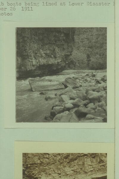 Lining of the Kolb boats at Lower Disaster Falls. Extreme low water