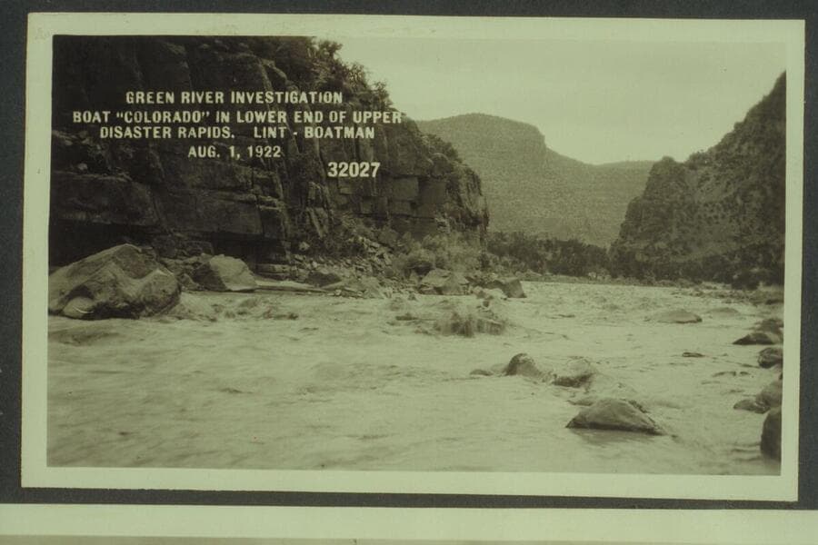 Green River Investigation- Boat "Colorado" in lower end of Upper Disaster Rapids. Lint- boatman