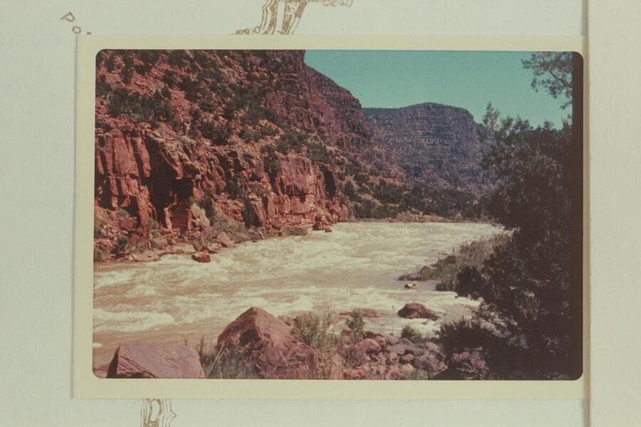 Lining of the Kolb boats at Lower Disaster Falls. Extreme low water