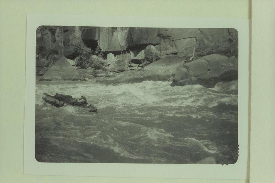 Bill Davis in No Name Rapid or Harp Rapid in Lodore. Probably Mile 233.1. From left bank