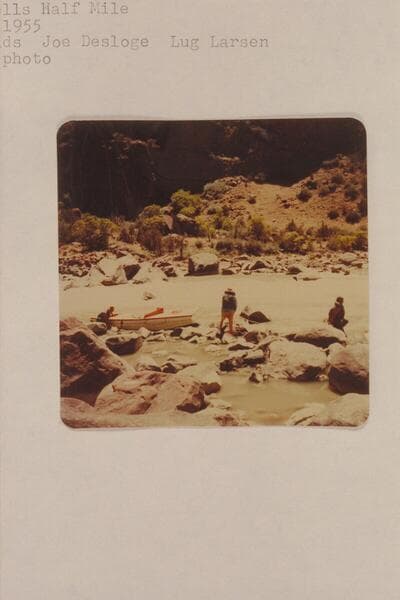 Marie Desloge; Lug Larsen; AK Reynolds; Joe Desloge. Foot of Triplett Rapid, Canyon of Lodore, Green River