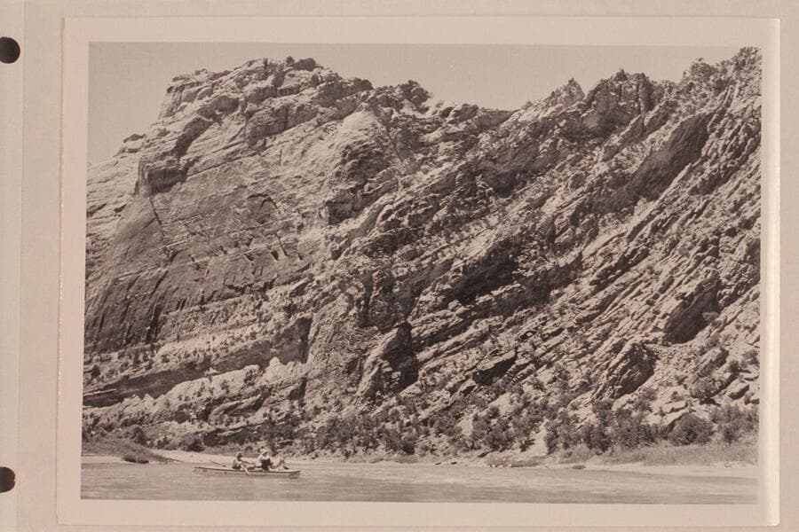 Lower end of the Canyon of Lodore; Steamboat Rock and Pats Hole at right