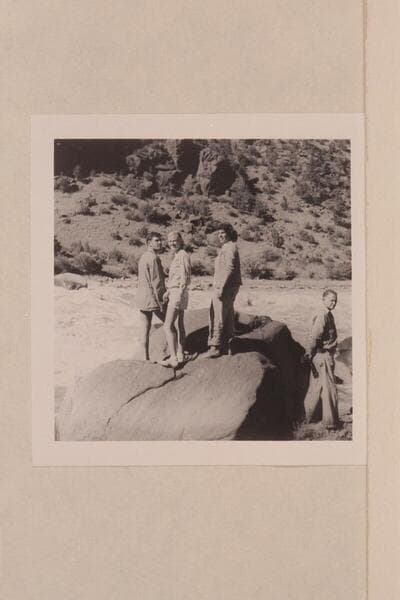 Charades in Red Canyon. Left to right: Maradel Marston, Garth Marston, Al Milotte, Shirley Marston, Willie Taylor