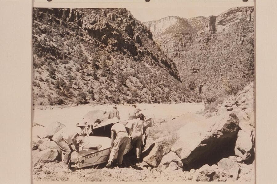 Portage of Hells Half Mile by Nevills party. Marston Green River Expedition