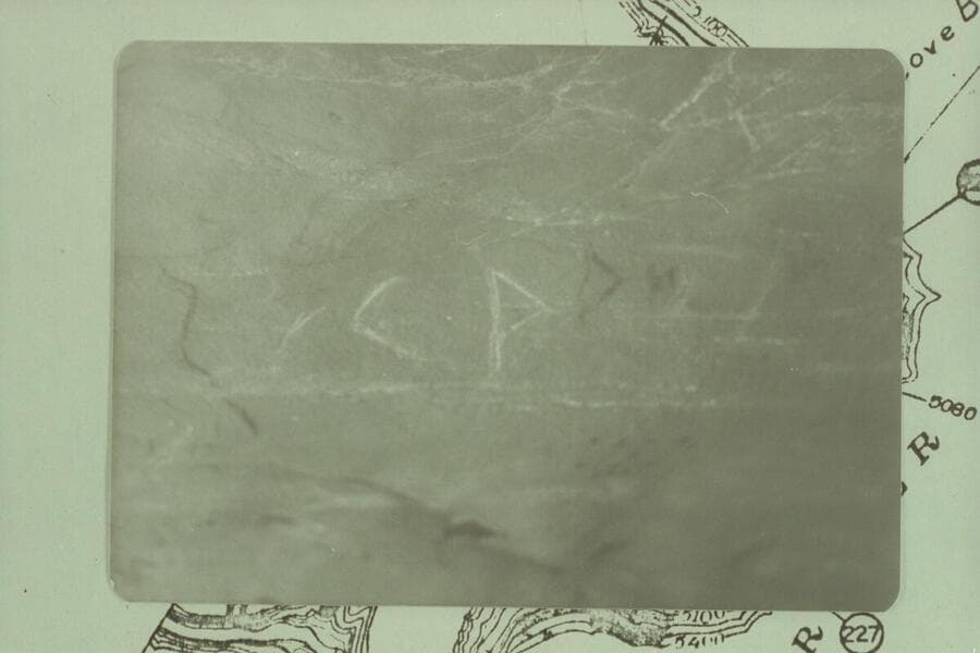 Inscription at Rippling Brook. P carved very deep; appears the AX was added later; not as deep as the P