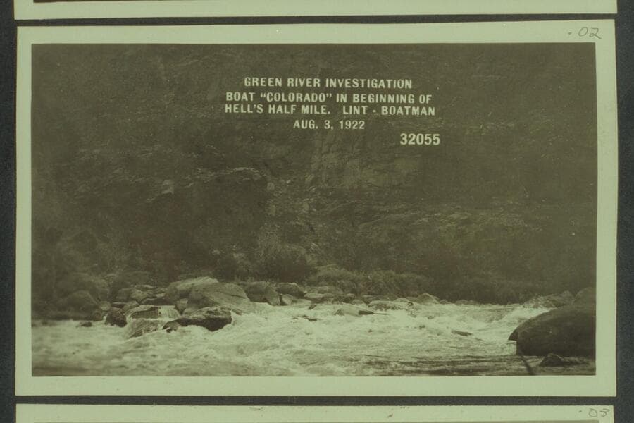 Green River Investigation: Boat "Wyoming" in Beginning of Hell's Half Mile. Blake--Boatman